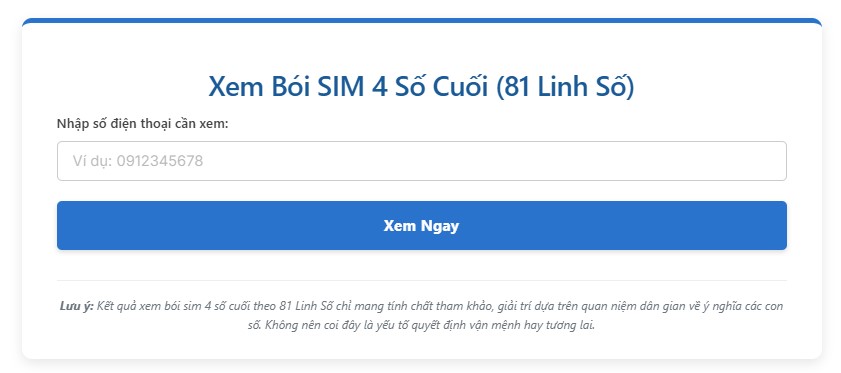 Xem Bói SIM 4 Số Cuối (81 Linh Số)